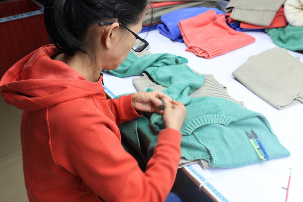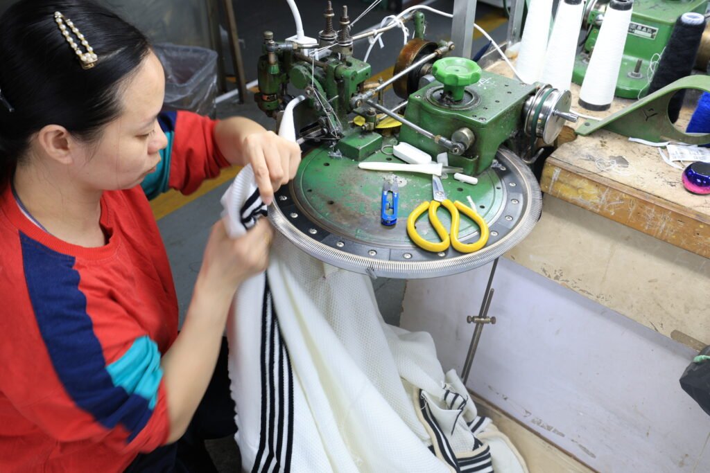 • Full Vertical Process: From knitting, linking, and washing to ironing and final packaging.